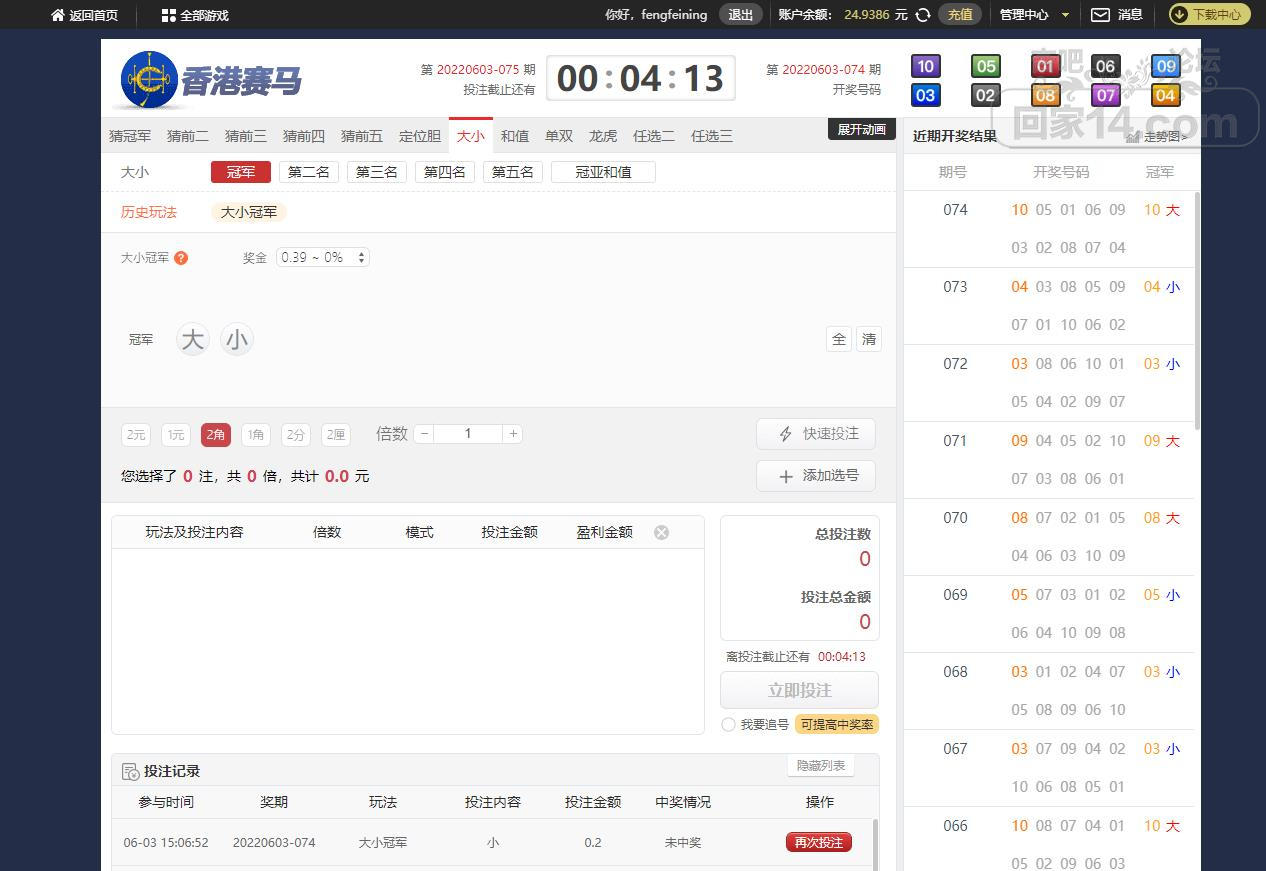 6-3摩臣香港赛马输了点