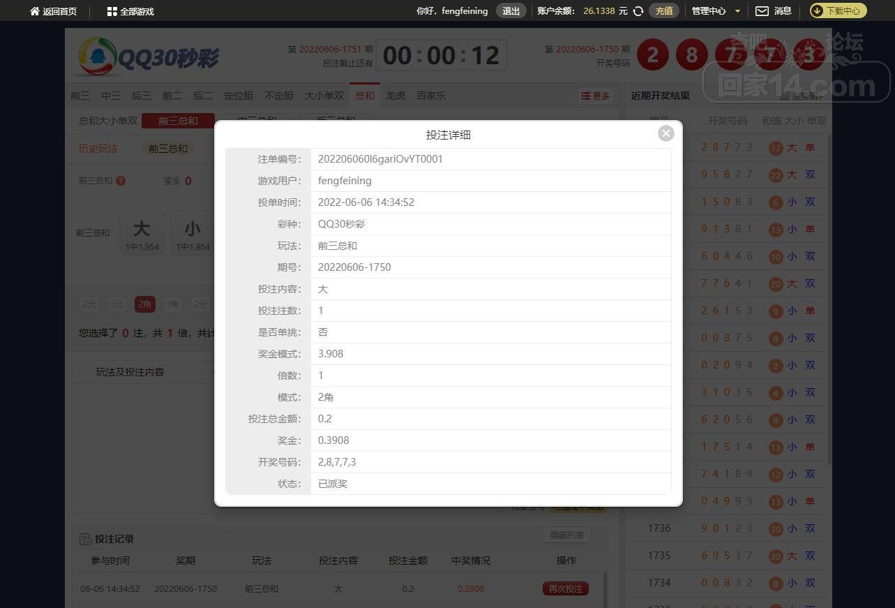 6-6摩臣QQ30秒运气挺不错