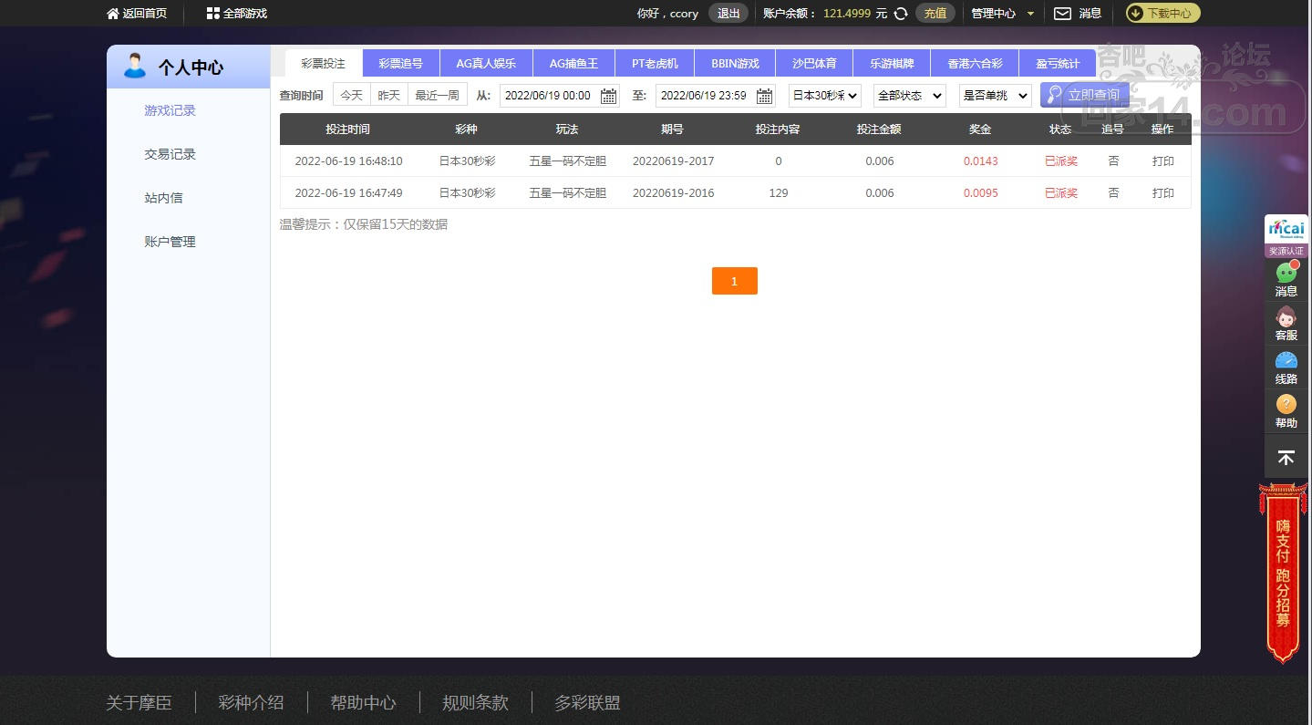 30秒投注比较顺利