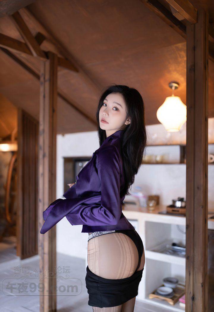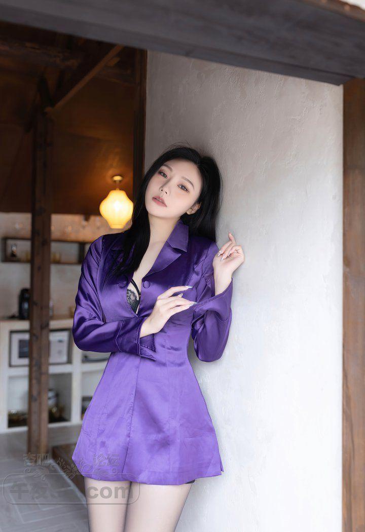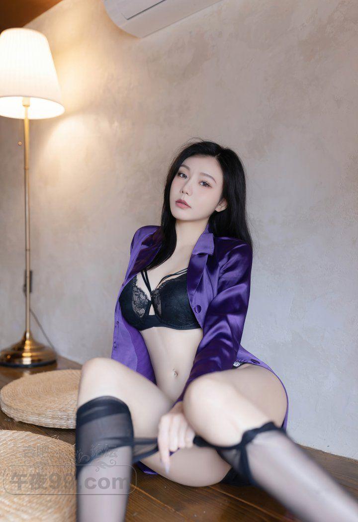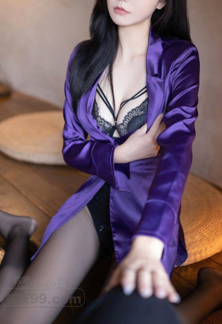 成熟美少妇紫色睡袍黑丝美腿蕾丝内衣装双峰饱满【30P】