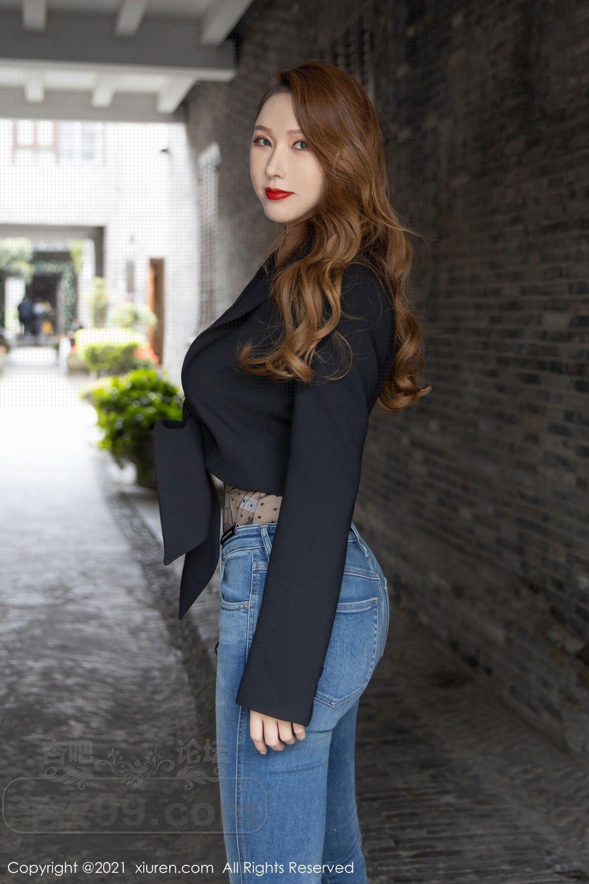 [美腿翘臀] 女神Egg_尤妮丝杭州旅拍脱牛仔裤露连体内衣开档肉丝诱惑写真【43P】 |